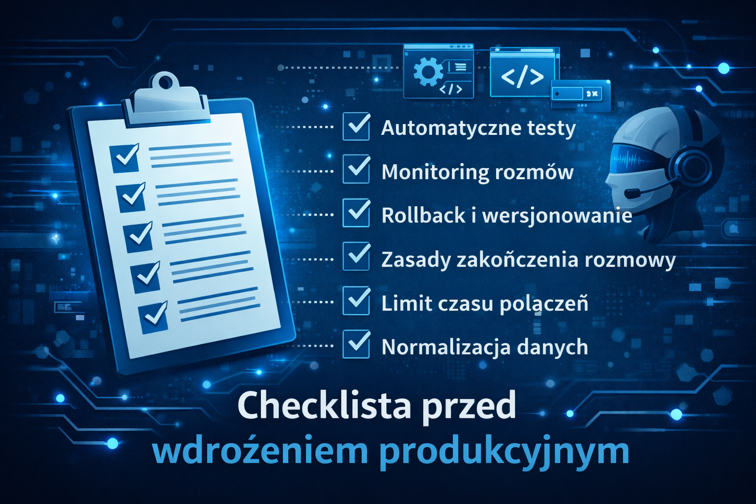 Na podstawie zdobytych doświadczeń wypracowaliśmy zestaw elementów, które uznajemy za niezbędne przed uruchomieniem voicebota w środowisku produkcyjnym: